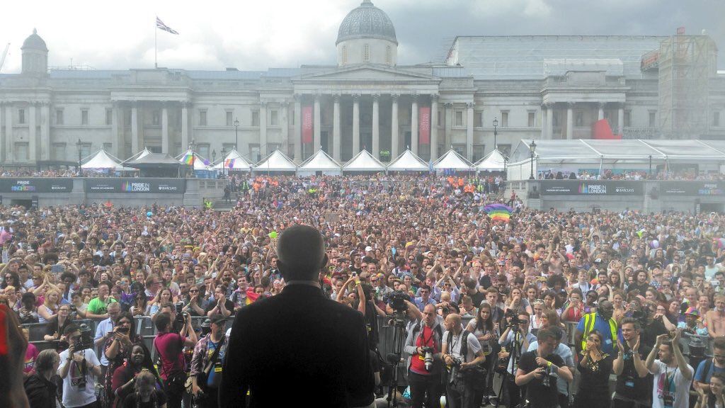: Quite an image of a British Muslim Mayor speaking at a massive LGBT Pride event.